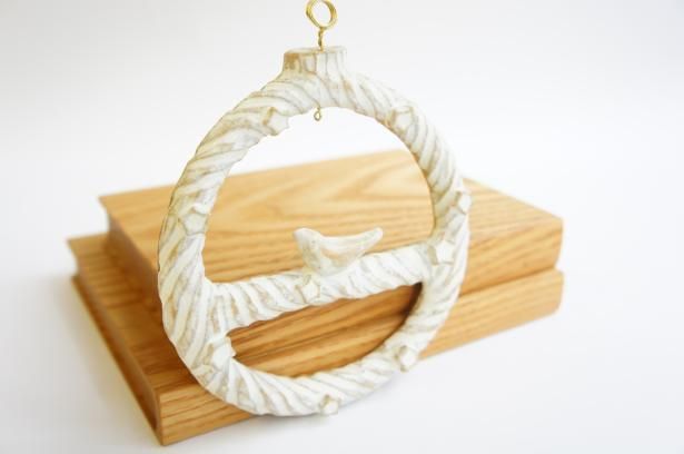 アンティークリースのような風合いの陶の壁掛け。リースをモチーフに星が散りばめられた景色に小鳥が1羽。今にもさえずりが聴こえてきそうです。<幅12.5cm×高さ13cm×厚さ1.4cm 上部に壁掛け用ワイヤーフック付>