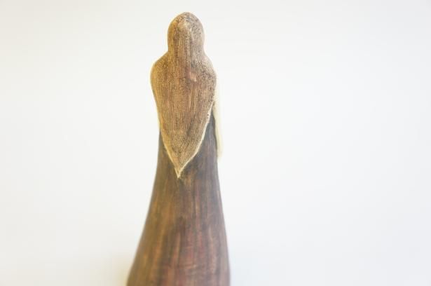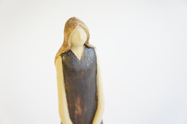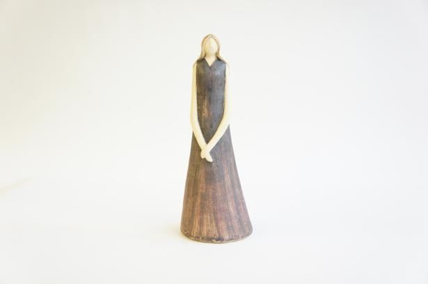 涼しげな黒いドレスを着た女性像。ドレスからスラリと伸びた長い腕が印象的に、亜麻色の長い髪とドレスの裾が今にも風になびきだしそうです。<幅6.5cm×高さ18.5cm×厚さ6.5cm>